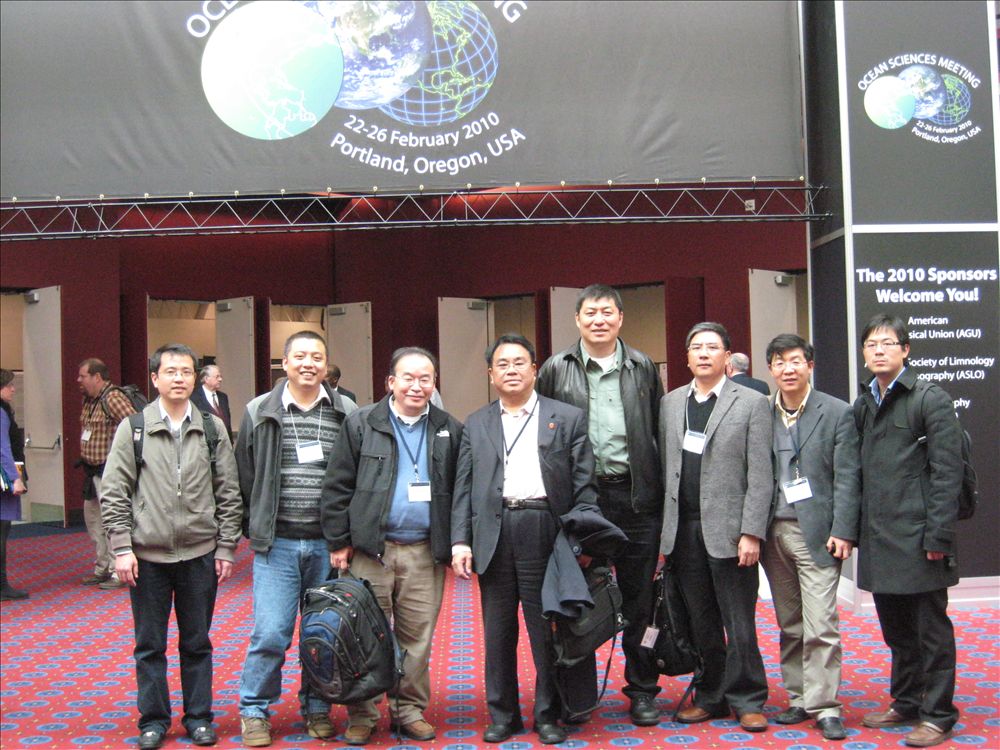由美国地学联合会、美国海洋与湖沼学会和美国海洋学会联合举办的2010年海洋科学会议于2010年2月22-26日在美国俄勒冈洲波特兰(Portland, Oregon)举行,该会议吸引了全世界4000多名科学家参加。浦京集团官网派出了由黄硕琳副校长为团长的学术代表团,海洋科学学院院长许柳雄教授、陈新军教授、胡松和官文江副教授、李曰嵩博士等参加了会议。会议上,共张贴学术报告5份,陈新军教授应邀做了口头学术报告。研究成果引起了与会者的兴趣,并得到大家好评。会议期间,代表团与参加会议的留美博士、教授等海洋界学者举行了交流。