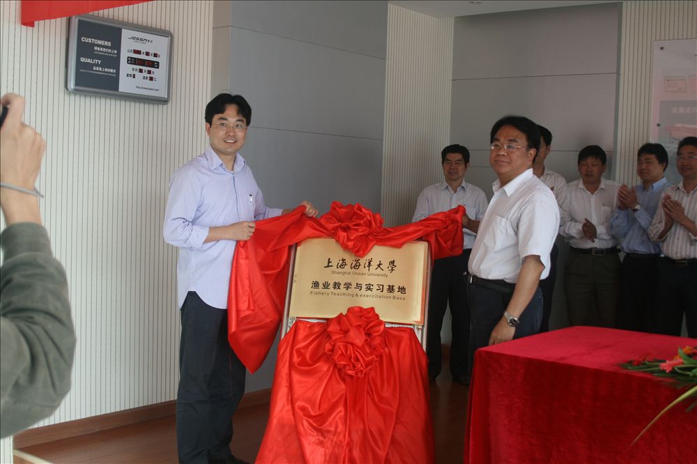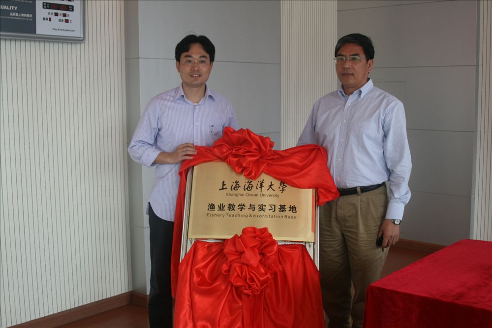 黄硕琳副校长和贺波总经理为渔业教学与实习基地揭牌