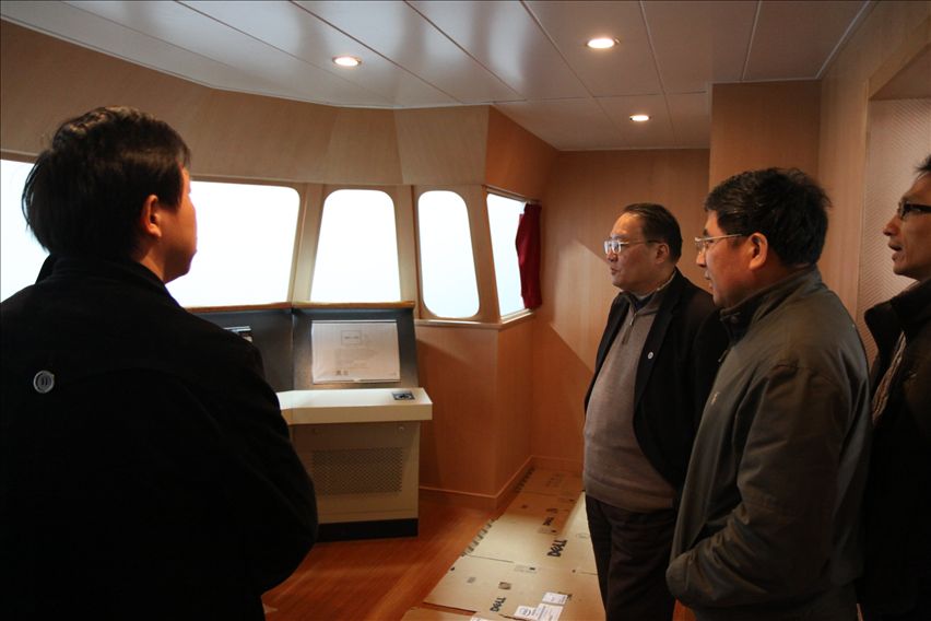 潘校长听取了海洋科学学院院长许柳雄、副院长陈新军对远洋渔业实习基地施工、布置进展的详细汇报,并饶有兴趣的查看了刚刚安装好的NTPRO 4000型渔船操纵与捕捞作业模拟器。潘校长仔细询问了各类设备的安装进展情况,详细了解各种设备的功能,并对整个楼层的布置提出了宝贵的意见。