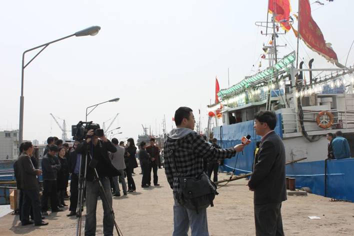 宁泰远洋渔业公司的首批渔船即将开航奔赴北太平洋鱿钓渔场进行探捕与试钓。舟山海洋渔业局有关领导、部分渔业工作者及一些渔船船长也来到现场观摩和学习。舟山电视台对我院开展的本次科研工作进行了采访和报道。