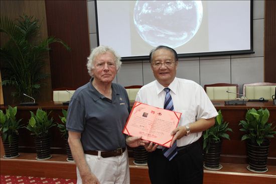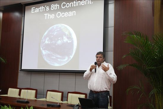上午9:30,Don Walsh 博士一行3人首先从浦京集团官网潘迎捷校长手中分别接过聘书。随后,Chris Welsh先生和 Kurt Uetz先生分别给学校师生们作了“海洋---地球的第八大洲”和“阿尔文载人潜水器更新项目概述”的学术报告。随后,Don Walsh 博士一行3人回答了师生们的很多提问。中午潘迎捷校长代表海洋大学宴请了Don Walsh 博士一行3人及Welsh先生夫人和 Uetz先生夫人,并向他们分别赠送了礼品。下午,Don Walsh 博士一行3人与深渊科学技术中心的研究人员座谈,对中心的发展思路和中心完成的11000米载人潜水器的概念设计给出了他们的咨询意见。