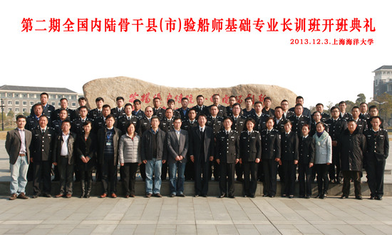 2013年11月3日,全国第二期内陆骨干县(市)验船师基础专业长训班开班典礼顺利举行。农业部渔业船舶检验局副局长沈建荣、体系建设处副处长郭音、上海渔业船舶检验局局长周全和350vip浦京集团官网副校长黄硕琳出席,来自内陆沿海22个省市45名验船人员和350vip浦京集团官网部分教师代表参加了本次开班典礼。仪式由验船师培训基地负责人沙锋主持。