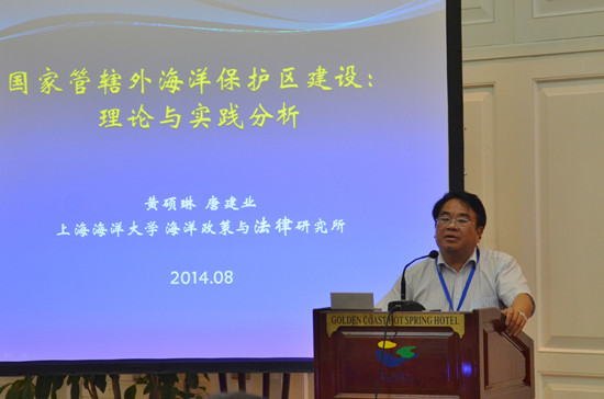 年会的学术研讨主要围绕海洋权益维护、海洋争端解决、建设海洋强国三项议题展开,25名专家、学者在大会上发言,对海权、海洋战略等基本理论问题进行了深入剖析,并就南海仲裁案中关于菲律宾核心诉求、历史性权利、我国九段线的历史与法理基础等国际焦点问题展开热烈讨论。黄硕琳教授就“国家管辖外海洋保护区建设”进行了主题发言。