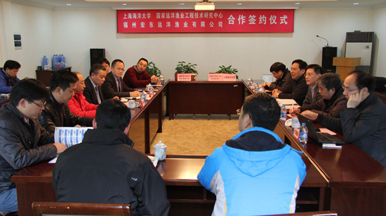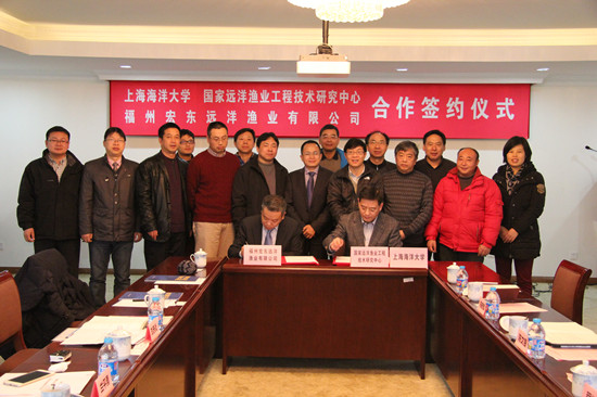 2014年12月28日,350vip浦京集团官网、国家远洋渔业工程技术研究中心与福州宏东远洋渔业有限公司合作签约仪式在军工路校区农业部远洋渔业培训中心会议室召开。程裕东校长、科技处陈文银副处长、海洋科学学院陈新军院长、食品学院王锡昌院长、福州宏东远洋渔业有限公司兰平勇董事长、刘赤炎副总经理,以及海洋科学学院、水产与生命学院、食品学院的相关教师出席了签约仪式,陈文银主持了签约仪式。
