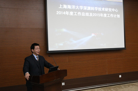会议首先对远道而来的嘉宾表示感谢并一一作了简要介绍。由吴嘉敏书记致欢迎词,感谢社会各界对浦京集团官网深渊中心的支持。随后深渊中心主任崔维成教授汇报了深渊中心2014年所开展的工作及2015年工作设想,上海彩虹鱼科考船科技服务公司董事长卢云军汇报了11000米级全海深载人深渊器的专用母船,“张謇”号科考船的设计工作进展,上海彩虹鱼海洋科技有限公司总经理吴辛汇报了深渊技术产业化和市场化工作的进展,上海彩虹鱼海洋科技有限公司副总经理董瑞给大家汇报了2015年建立深渊产业基金的工作计划。