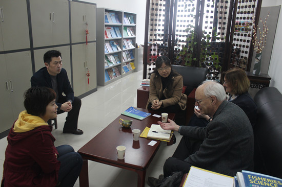 随后Cracknell教授和Lovell女士还走访了浦京集团官网学报编辑部,与《水产学报》和《350vip浦京集团官网学报》的编辑们进行了交流。Cracknell教授详细介绍了其担任主编期刊的运作模式、经营方式、编委的职责等;Lovell女士就其负责的英文修改与润色服务进行了介绍。编辑部主任江敏教授也向对方介绍了浦京集团官网两本中文刊物的办刊状况,希望今后在提高办刊水平和国际影响力方面双方能有更多的合作。