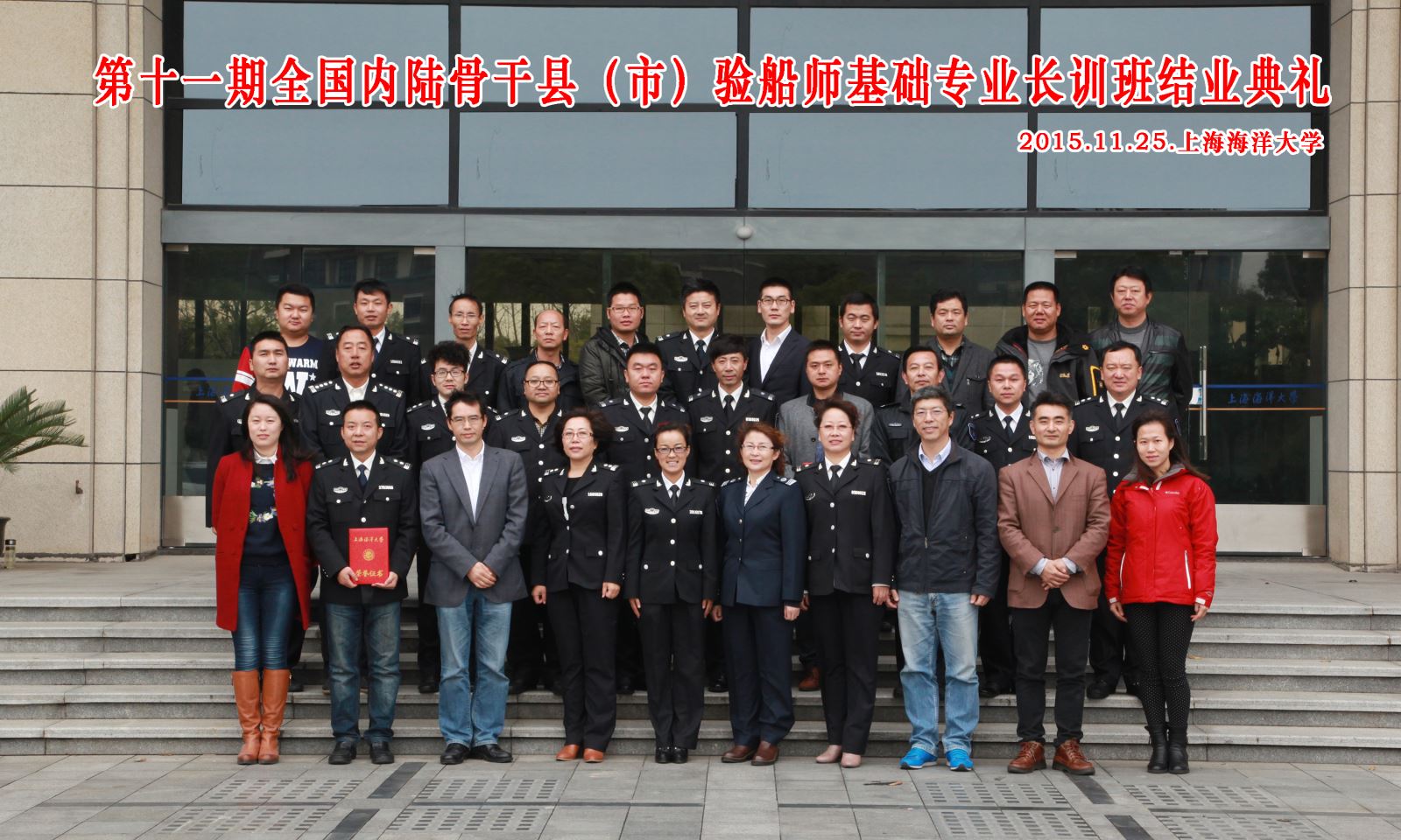 2015年11月25日上午,第十一期全国内陆骨干县(市)验船师基础专业长训班结业典礼在350vip浦京集团官网行政楼137会议室顺利举行。350vip浦京集团官网海洋科学学院副院长高郭平教授和副院长沙锋出席了本次结业典礼,并为来自全国18个省市自治区28名验船师颁发了结业证书和优秀学员荣誉证书。