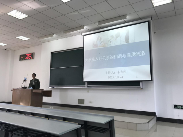 10月24日下午,国家二级心理咨询师、上海市中级职业咨询师、上海海事大学信息工程学院李吉彬老师在第一教学楼203教室为我院大二同学带来以“大学生人际关系的和谐与自我调适”为主题的心理健康讲座。作为近年来学院比较重视的活动之一,本次心理讲座旨在调解大学生的人际关系,加强大学生的情绪管理,缓解大学生的学习压力,促进大学生心理的健康成长。