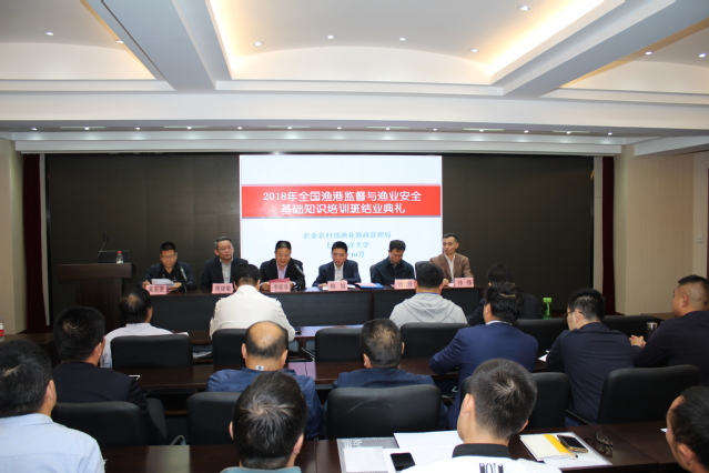 2018年10月29日,为期十五天的农业农村部渔业渔政管理局“全国渔港监督与渔业安全基础知识培训班”结业典礼在浦京集团官网军工路校区顺利举办。农业农村部渔业渔政管理局韩旭副局长、安全处黄东贤处长、上海市农委水产办周建敏主任、东海水产研究所刘云泽书记以及浦京集团官网李家乐副校长、海洋科学学院沙锋副院长、远洋渔业培训中心办公室陈锦淘副主任参加了结业典礼,典礼由黄东贤处长主持。