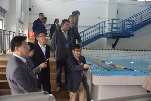 11月12日上午,在举行本科教学工作审核评估专家见面会后,专家组在校领导陪同下,参观了海洋科学学院水上安全和救助训练中心。该中心拥有的水池能够通过造波球造浪,模拟海上6级风浪、雨水和雷电效果,让本科生能够获得更加真实的海上安全和救助经验。陈新军院长向专家组成员介绍了实训中心的基本功能,同时本科生志愿者也利用水池向专家演示了水下机器人和仿生机器鱼的远程操控。