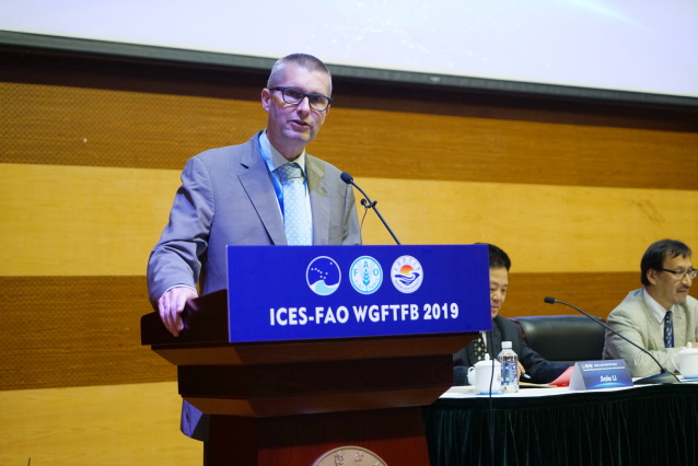 会上,FAO资深渔业官员Raymon van Anrooy 代表联合国粮食及农业组织发表讲话。他介绍到:“ICES-FAO捕捞技术和鱼类行为工作组于2002年成立。2011年,ICES和粮农组织同意共同主持年度会议。2013年,研讨会在泰国举行,2016年在墨西哥举行。在上海举行的是ICES-FAO工作组的第3次会议。我们希望将来可以召开更多次这样的会议,并进一步加强我们机构之间的合作。粮农组织随时准备向全世界传播各位的研究成果,使渔民和鱼类种群真正受益,使各位的研究成果不仅仅反映在学术期刊上,也有助于养护和可持续利用海洋和海洋资源,以促进可持续发展。”