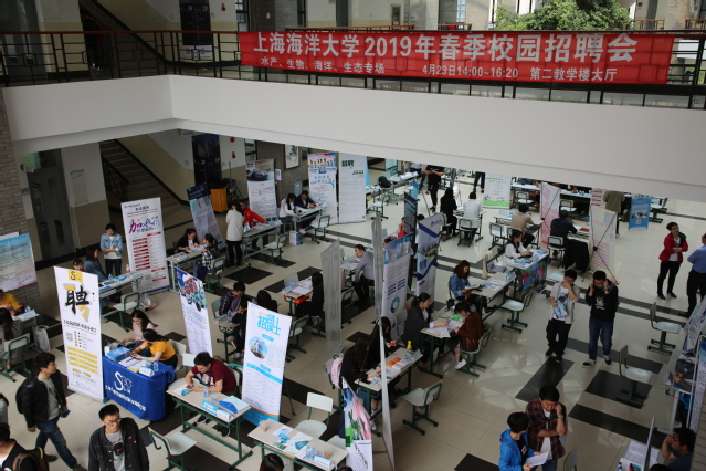 4月23日下午,在第二教学楼一楼大厅,海洋科学学院与水产与生命学院、海洋环境与生态学院联合举办350vip浦京集团官网(水产、生命、生态、海洋)专场招聘会,以促进学院与行业、企业进行深入交流合作,推动毕业生顺利就业、满意就业、高质量就业。此次海洋科学学院共邀请到渔业浙江大洋世家股份有限公司、浙江兴邦远洋渔业有限公司、平太荣远洋渔业集团有限公司、上海地听信息科技有限公司、上海普适导航科技股份有限公司、上海中昌航道工程有限公司、上海点鱼仪器有限公司、上海金优远洋渔业有限公司、上海水辰信息科技有限公司等15家专业相关单位,提供岗位数62个,招聘总数125人,主要需要海洋科学学院海洋渔业科学与技术、海洋科学、海洋技术专业的学生,岗位涵盖了我院所有本研专业。为我院学生提供了校门口的优质就业资源。