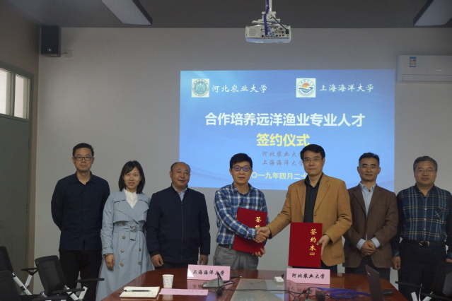 2019年4月25日上午在海洋科学学院351会议室,浦京集团官网与河北农业大学合作培养远洋渔业人才签约仪式顺利举行。河北农业大学海洋学院院长曾昭春、水产科学系主任齐遵利,浦京集团官网海洋科学学院院长陈新军、副院长沙锋、胡松等人参加了签约仪式。本次签约仪式由海洋渔业系副主任邹晓荣主持。