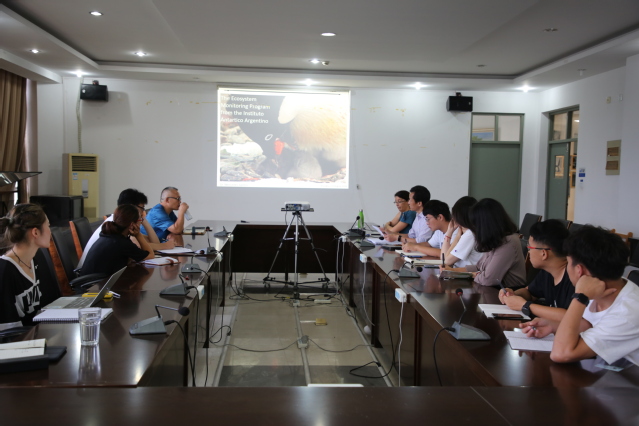 2019年8月29日,应浦京集团官网极地研究中心、大洋渔业资源可持续开发教育部重点实验室邀请,在中澳海洋研究中心的支持下,阿根廷南极研究所(IAA)研究员、南极海洋生物资源养护委员会(CCAMLR)科委会副主席Maria Mercedes Santos博士访问浦京集团官网,并做了题目为“The Ecosystem Program from the Instituto Antarctico Argentino”(阿根廷南极局生态系统项目)的学术报告。国际渔业履约中心唐建业教授、外国语学院邹磊磊教授、海洋生态与环境学院高春梅副教授等师生参加了交流。极地研究中心朱国平教授主持了报告会。