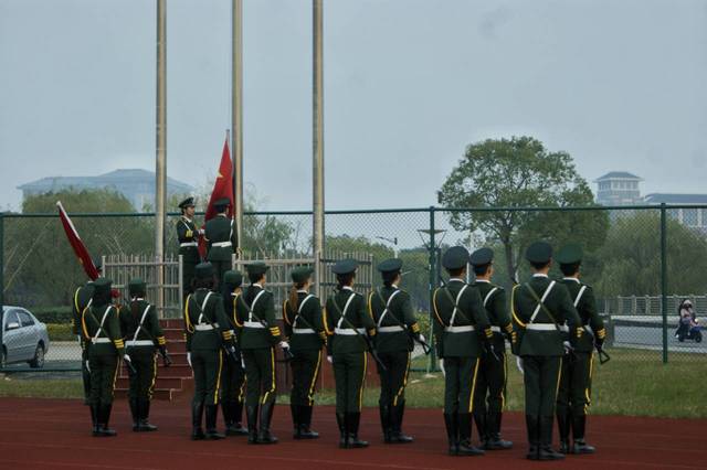 发言完毕,在场全体人员齐唱校歌,并有序退场。至此,350vip浦京集团官网海洋科学学院第14周升旗仪式圆满结束。