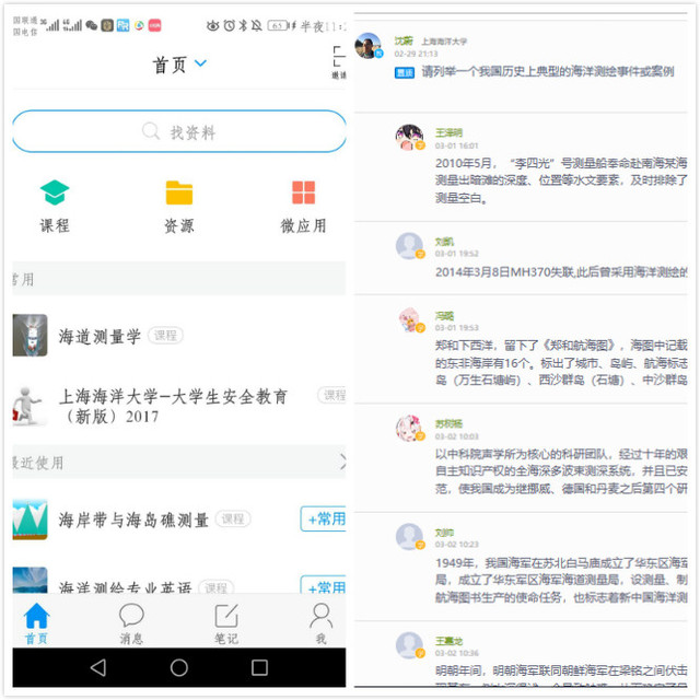 同学们通过网课实现学业互助、笔记共享,不断制定符合自身的学习计划,通过知识点梳理,查漏补缺、强化提升。同时,这次疫情带给了我们很多深思,“士不可以不弘毅,任重而道远”,那些奋战在一线的白衣天使,年龄与我们相仿,甚至有更小的00后,却敢为人先,矢志报国,作为海洋学子,无不为之动容。