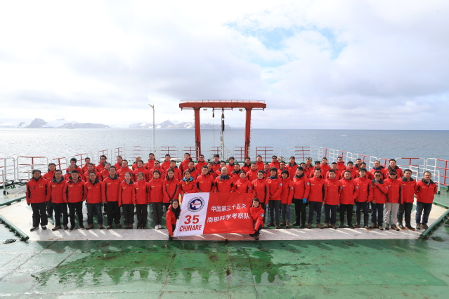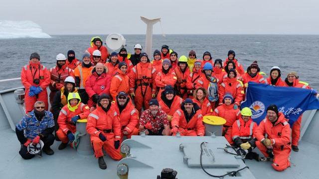 图1 朱国平(前排右八)参加中国第三十五次南极科学考察队赴罗斯海和阿蒙森海调查