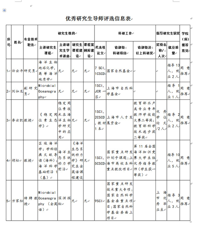 根据《350vip浦京集团官网全面落实研究生导师立德树人职责实施细则》和《350vip浦京集团官网优秀研究生导师评选办法(试行)》等文件精神,经个人申请、学院评定专家组审定,海洋科学学院对拟推荐的350vip浦京集团官网2020年度优秀研究生导师名单予以公示如下: