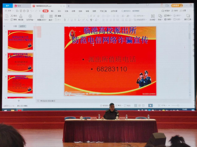周民华罗列出众多临港地区真实发生的电信网络诈骗案件,在对这些案件进一步介绍剖析的过程中,总结出近年来电信网络诈骗最为频繁的六种作案手段。周民华谈了自己的体会,他表示,目前校内90%的侵财类案件都是非接触的性的电信网络诈骗,并且大学生是最容易受骗的群体。剖析案件的目的是希望能够对同学们起到警示作用。电信网络诈骗离我们并不远,要在平时养成良好的上网习惯,保护好个人信息,谨慎投资,树立正确的价值观。