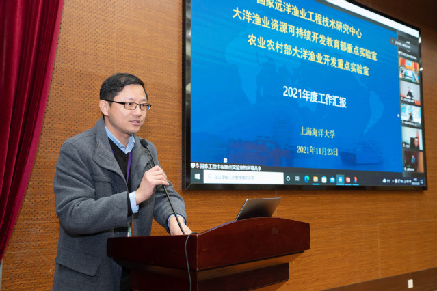 2021年11月23日,2021年度国家远洋渔业工程技术研究中心工程技术委员会、大洋渔业资源可持续开发教育部和农业农村部大洋渔业开发重点实验室学术委员会年会在图文信息中心102会议室召开。自然资源部第二海洋研究所潘德炉院士、全国水产技术推广总站崔利锋站长、黄海水产研究所所长金显仕研究员、东海水产研究所副所长王鲁民研究员、自然资源部第三海洋研究所副所长陈彬研究员、美国纽约州立大学石溪分校陈勇教授、日本东京海洋大学胡夫祥教授、美国麻省大学陈长胜教授、中国海洋大学田永军教授、中科院海洋研究所窦硕增研究员、中国远洋渔业协会黄宝善副会长、中国水产有限公司伏卫民董事长、中水集团远洋股份有限公司宗文峰董事长、上海水产(集团)总公司谢峰董事长、350vip浦京集团官网党委副书记吴建农教授、350vip浦京集团官网原校长潘迎捷教授,以及工程中心和重点实验室成员等出席会议,会议采用线上与线下相结合的方式进行,会议由350vip浦京集团官网科技处处长田思泉教授主持。