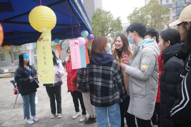 雪聚“萤”灯是猜灯谜,各色纸灯笼高悬,上挂谜面,灯谜种类繁多。同学们簇拥在一起绞尽脑汁冥思苦想。随着一个个谜底揭出,同学们参与活动的热情愈发高涨。