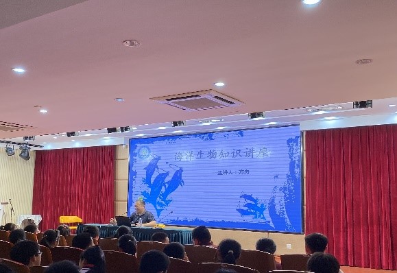 为迎接建党100周年,在海洋科学学院与临港一中党组织共建框架协议下,以弘扬海洋文化、普及海洋知识,培养一批有海洋情怀和海洋视野的新时代青少年为目的,同时也作为海洋科学学院海洋文化节活动的开篇,2021年5月10日海洋科学学院党委副书记石张东、渔业资源调查方向专家方舟教授一行来到临港一中,给中学生们开展了一堂以海洋生物为主题的讲座,对海洋主要经济鱼类进行了介绍。