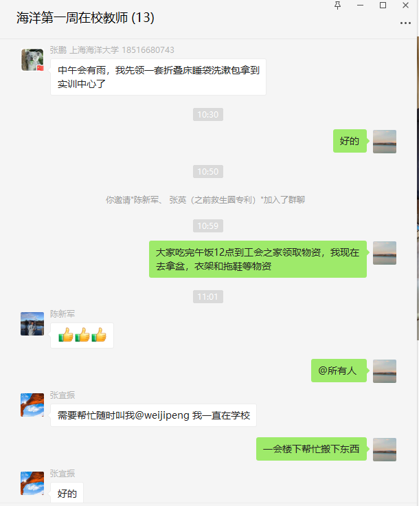 根据上海市疫情防控工作统一要求,浦京集团官网于3月13日12点正式启动校园准封闭管理。海洋科学学院第一时间响应,院领导带头,值班老师积极参与,并建立留校值守教职工联系群,千方百计为留校值守教职工做好保障工作,解决教职工的后顾之忧。