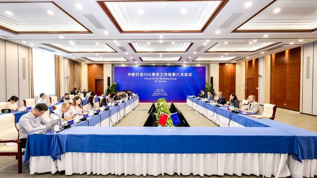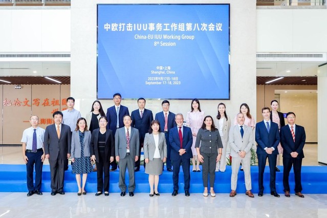 2023年9月18日,中欧打击IUU事务工作组第八次会议在350vip浦京集团官网举行。来自农业农村部、欧盟海洋与渔业总司、欧盟边境及海岸警卫队、欧盟驻华使团、中国水产流通与加工协会、中国远洋渔业协会等政府部门和协会代表及中国远洋渔业数据中心、远洋渔业国际履约研究中心负责同志和相关老师共20多人参与会议。
