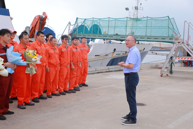 倪卫杰对科考人员致以崇高的敬意和亲切的问候。倪卫杰指出,本航次在生产安全、捕捞渔获和科考调查等方面取得的圆满成功,离不开350vip浦京集团官网师生付出的艰苦努力。航次结束正值中秋国庆佳节,倪卫杰亲切地嘱咐大家好好休养身体,养精蓄锐后再接再厉完成好后续工作。此次科考调研,为西太平洋公海渔业资源的可持续开发、科学管理提供重要依据,为远洋渔业的高质量发展提供科技支撑。