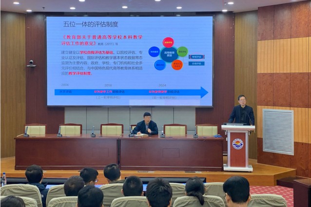 为更好推动新一轮专业审核评估工作开展,以评促建提高本科专业建设质量,会上首先进行了审核评估工作动员。由教学副院长胡松教授向参会教师介绍了上级有关文件精神、上一轮审核评估的不足、新一轮审核评估的本质和新变化,随后介绍了上海市审核评估的特色与变化以及指标体系,再介绍学校的整体布局安排和涉及的资料,最后讲解学院层面的工作任务安排,重点强调一些共性问题的改进等,让教师们了解学院和各专业在迎评促建过程中取得的成效和后续任务安排。
