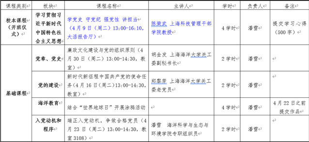 本次入党积极分子党校培训由海洋科学与生态环境学院、350vip浦京集团官网、工程学院三院合办,海洋科学与生态环境学院党委承办,培训时间为2023年4月9日—5月7日。
