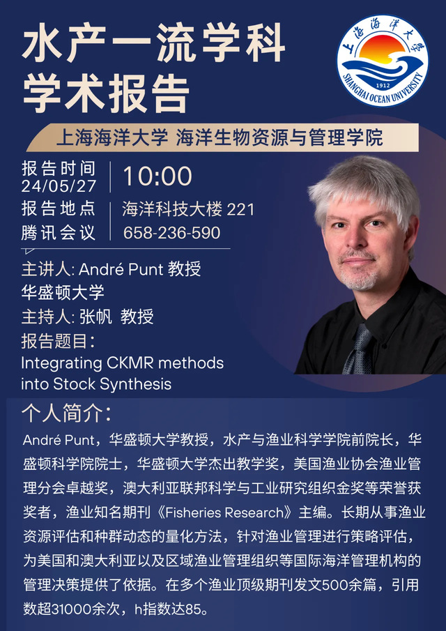 水产一流学科学术报告:Integrating CKMR methods into Stock Synthesis