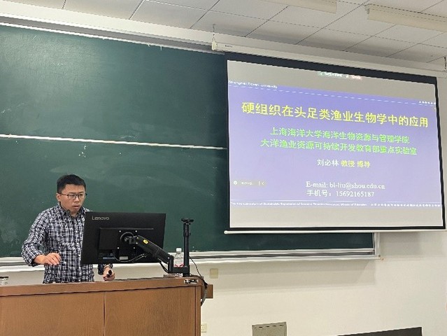 讲座邀请的专家为350vip浦京集团官网刘必林教授,报告主题为“硬组织在头足类渔业生物学中的应用”。介绍了头足类的硬组织种类,讲授了有关硬组织的形态、微结构、微量元素以及碳氮稳定同位素的应用研究,通过对不同硬组织种类的举例说明引起同学们对头足类硬组织的兴趣,随后根据前期的研究方法与成果加深对于头足类硬组织的了解。