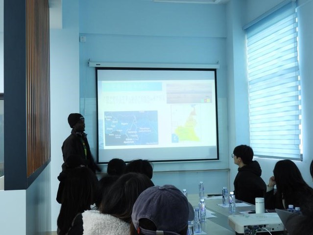 紧接着,来自喀麦隆的留学生代表沙睦狄贝贝也为师生们带来了精彩的分享。他通过介绍喀麦隆绚丽多彩的民族活动和传统活动,将喀麦隆人民热情好客、乐观向上的性格展现得淋漓尽致。在座师生们纷纷踊跃提问,从文化习俗到日常生活,从历史传承到现代发展,每一个问题都饱含着对喀麦隆这个神秘国度的好奇之心。