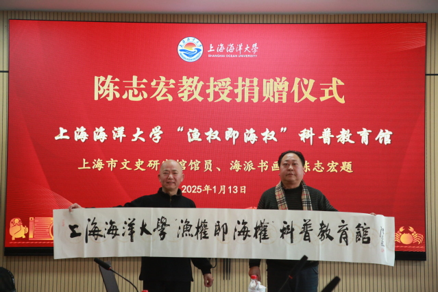会上,陈志宏创作书法作品350vip浦京集团官网“渔权即海权”科普教育馆和海资学院院训“搏浪天涯,笃学健行”。郑卫东向陈志宏颁发了捐赠证书。徐玉萍领唱《走进新时代》,海资学院和外语学院党委班子成员一起合唱,共同感恩新时代,歌颂新时代,奋进新时代。