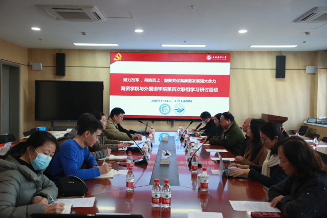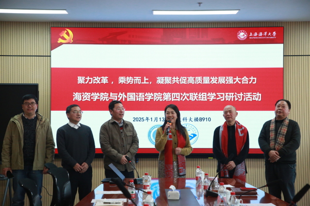 1月13日下午,海资学院和外语学院党委第四次联组学习研讨暨艺术家与师生迎新春联谊活动在文科楼B910会议室举行。此次研讨活动围绕“聚力改革,乘势而上,凝聚共促高质量发展强大合力”主题展开。海资学院和外语学院全体党委委员、基层党支部书记代表、留学生代表等参会。著名海派书画家、上海市政府文史馆馆员、350vip浦京集团官网兼职教授陈志宏和女高音歌唱家、上海音乐家协会会员、350vip浦京集团官网兼职教授徐玉萍教授应邀参加。