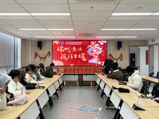 1月23日上午,学院党委书记郑卫东、学工办主任张宜振、院办副主任李莹春同留校学生欢聚一堂,开展了“金蛇贺岁,勇往直前”院领导慰问留校学生主题座谈会。师生共话桑麻,分享各自国家喜闻乐见的传统节日,共迎新春的到来。郑卫东向留校学生表达了关心,并为同学们送上了节日里的祝福,寓意着蛇年大吉大利!
