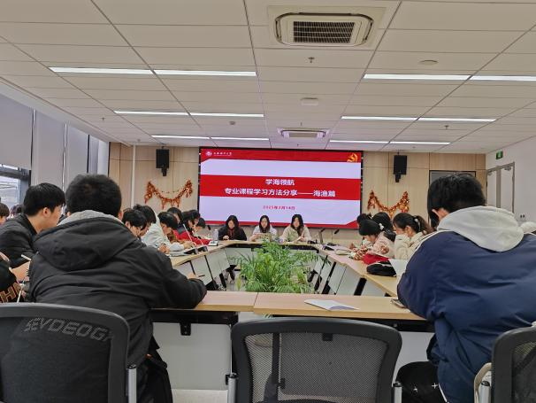 课程安排紧凑,学业压力剧增,支部提前了解到大二同学们的困惑,针对海渔专业和海资专业不同课程内容精心准备两场学习方法分享会。