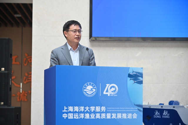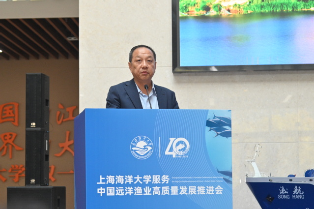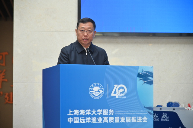 万荣在推进会上作主旨报告。他说,从1985年中国远洋渔业起步至今,学校始终与国家远洋渔业事业同频共振,在不同发展时期和阶段,在农业农村部等支持下,学校先后成立了农业农村部远洋渔业培训中心、中国远洋渔业数据中心、远洋渔业国际履约研究中心、全球渔业资源调查中心等,在人才培养、科技创新、国际治理等领域发挥了重要作用,见证并推动了中国远洋渔业从无到有、从小到大的跨越式发展。在海渔专业人才培养改革方面,学校先后获得3次国家教学成果奖、6次上海市教学成果奖。此外,学校还与中国远洋渔业协会、中水公司、上水公司等成立远洋渔业学院,获批教育部海渔专业核心课程群虚拟教研室、全国农业专业学位研究生实践教育示范基地、教育部首批国际组织人才培养创新实践基地、全球海洋治理人才培养创新与实践等国家级项目等。