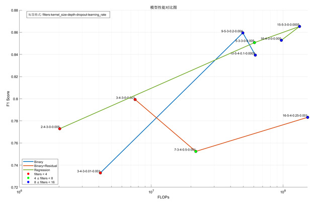 此外,团队还基于NAS遗传算法构建轻量化模型。通过在预设架构空间中搜索,团队构建了二分类模型、二分类+残差模型、回归模型,并设计梯度搜索与全局搜索两种方案。实验结果显示,团队成功筛选出两类最优模型,在满足精度要求的同时,大幅降低计算量,其中最轻量化模型的计算量较原模型下降了98%,有效减少人工调参时间,规避局部最优。