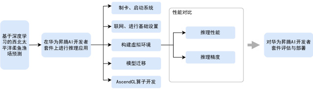 不过,传统的深度学习渔场预报系统因依赖大型服务器和远端数据传输,远洋渔船无法实现远端实时预报。为解决这一难题,团队引入边缘计算方案,选用华为昇腾Atlas200IDKA2开发者套件,成功实现模型从传统环境到国产AI芯片的迁移部署。这一过程并非一帆风顺,团队需要克服模型适配、性能优化等诸多挑战。通过深入了解CPU与NPU之间的差异,构建虚拟环境,并开发AscendCL算子,团队最终实现了模型的高效迁移与部署。