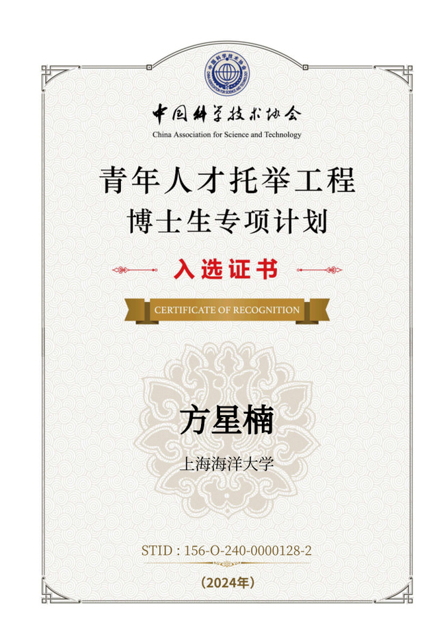 近日,350vip浦京集团官网陈新军教授团队在读博士生方星楠入选2024年中国科协“青年人才托举工程”博士生专项计划(首批),托举协会为中国水产学会。该计划是中国科学技术协会设立的一项旨在选拔和支持优秀青年科技人才的长期项目,旨在助力优秀博士研究生更好的成长,加快创新型青年科技人才培养。2024年首次推出的博士生专项计划,首批全国仅3226人入选。