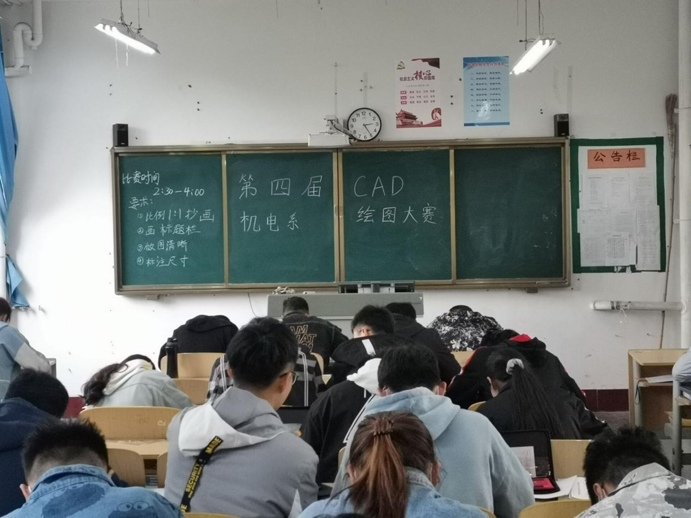 比赛结束后,各参赛选手按照要求提交精美工图并有序离场,大赛在同学们满意的神情中落下帷幕。