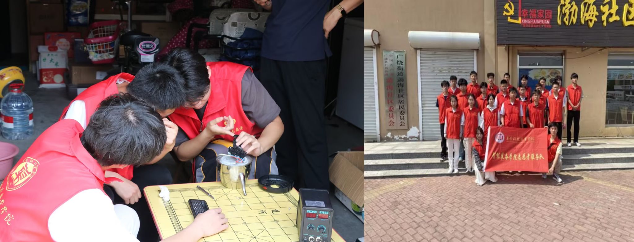 (4月27日,Beat365官方网站志愿服务团队走入渤海社区,开展电器维修服务,紧跟专业特点,帮助社区居民维修水壶等电器)