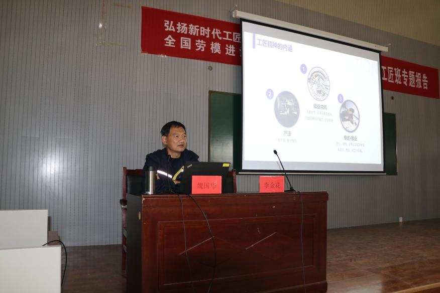 会议上,魏国华先生通过结合自己的大学生活和多年的工作经历,与大家分享了由上进心、自信心、自尊心、恒心“四心”而汇聚成的匠心,充分展现了劳动模范的爱岗敬业的理想追求,坚持不懈的创新精神,甘于奉献的优秀品德。现场学生兴致高涨,纷纷提出问题,将报告会的学习氛围推向了高潮,这次报告会使学生对自己所学专业的未来发展有了更深层次的信心。