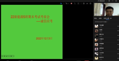 为了进一步加强同学们的考风考纪,构建诚信校园,保证期末考试的顺利进行,倡导同学们“端正考风、严肃考纪、文明答题、诚信应考”。2022年12月,Beat365官方网站21级辅导员以及22级班主任陆续开展线上班会,以正考风考纪。