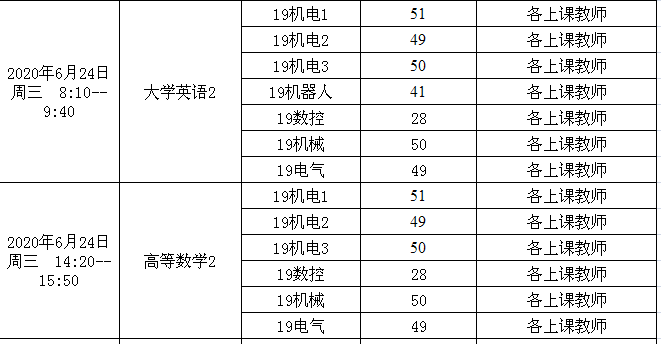 2019-2020-2Beat365官方网站2019级期末考试安排