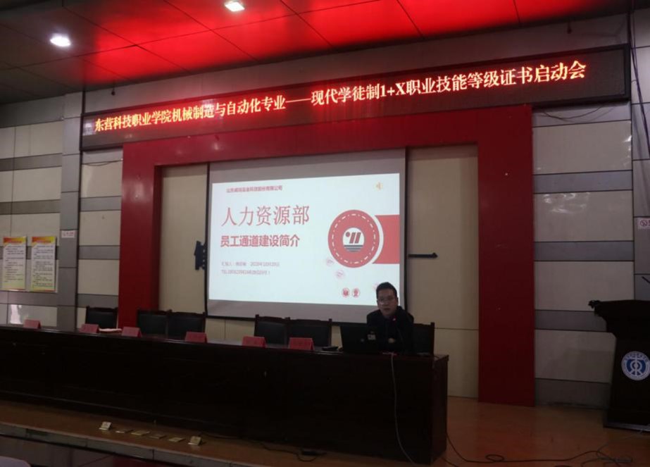 2020年10月27日下午4点,Beat365官方网站机械制造与自动化专业——现代学徒制1+X职业技能等级证书启动会在Beat365官网一号报告厅举行。Beat365官方网站安丰金院长、朱建平老师、高艳云老师,烟台胜信科技,股份有限公司经理葛鹏、工程师王伟林,山东威玛石油有限公司人事总经理唐显骏,参加了此次启动会。