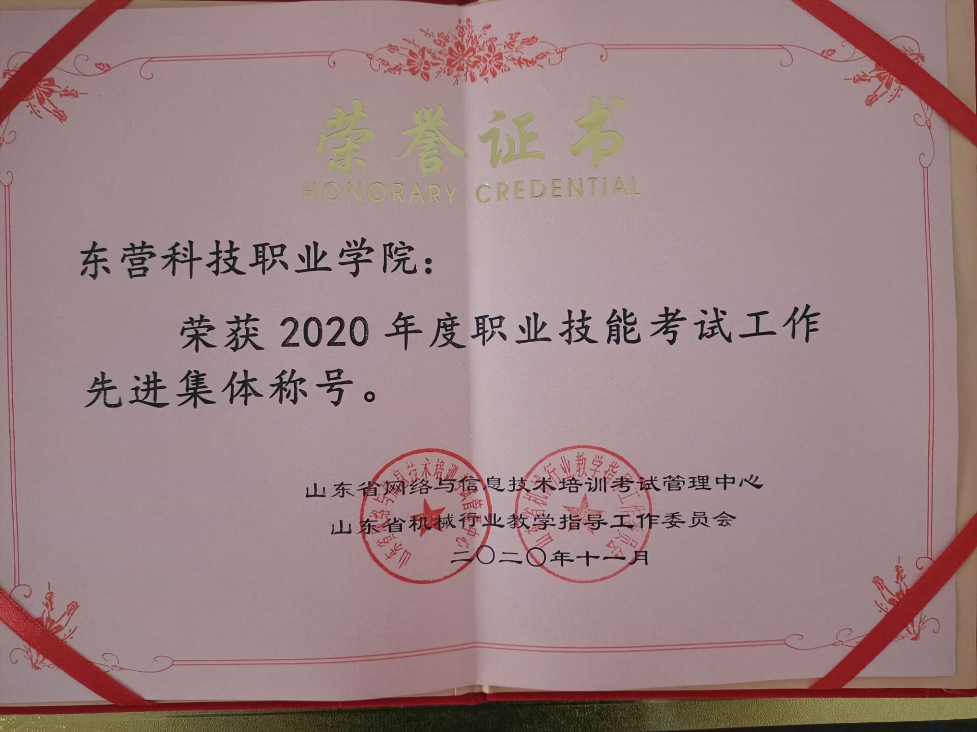 由Beat365官网Beat365官方网站申请,通过对全年考试质量管理、考试规模、体系建设、专家队伍建设等方面的考核,授予Beat365官网“2020年度职业技能评价工作先进集体”荣誉称号。