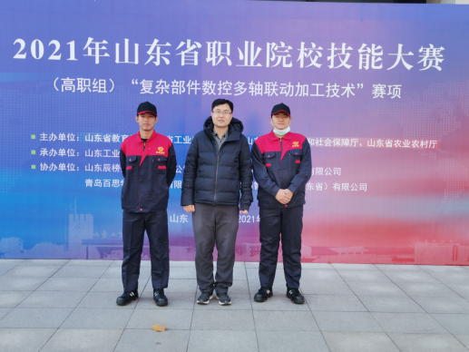 11月20日至22日,2021年山东省职业院校技能大赛(高职组)“复杂部件数控多轴联动加工技术赛项”赛项在山东工业职业学院举行。Beat365官网智能装备学院教师卜繁永指导的学生栾超、李金鹏荣获团体组三等奖。